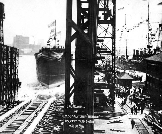 In the aftermath of the sinking of the RMS Lusitania in May 1915, President Wilson sided with the growing number of advocates of military preparedness who sought to protect America’s interests at home and abroad. As part of the preparedness movement, Wilson called upon Congress to authorize the construction of over 150 warships. With the passage of the Naval Act of 1916, the Boston Navy Yard prepared for an increase in the number of ships built, outfitted, and repaired at the facility.