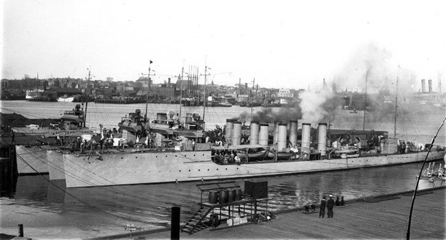Shortly after the outbreak of World War I in August 1914, President Woodrow Wilson declared that the United States would remain neutral. It would become the navy’s job to protect the nation’s neutrality at sea and at home by stationing destroyers at Boston Navy Yard.