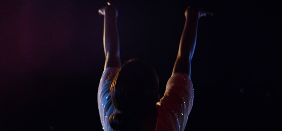 In this scene, a father holds his young daughter up while helping her skate at the Anacostia skating rink. The daughter is concentrating on her feet and has her head bowed, and then slowly lifts it as she realizes that she can trust the strength of her father.