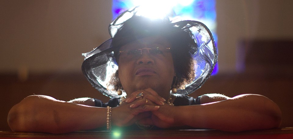 In this scene, a woman is featured bowing her head in prayer in a church pew, and then slowly lifting her head as the angelic glow of sunlight streams through the stained glass windows of the church. This woman is Lisa McNair, the sister of Denise McNair, one of the four girls killed in the bombing. The 16th Street Baptist Church is a National Historic Landmark and is an important place within the larger Birmingham Civil Rights National Monument, which was added to the African American Civil Rights Network in 2019.