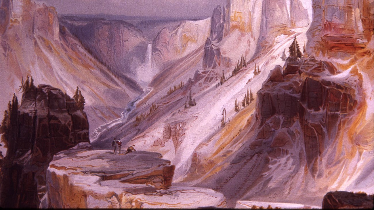 NPS / Thomas Moran, YELL 29 The crowning achievement of the returning expeditions was helping to save Yellowstone from private development. Langford and several of his companions promoted a bill in Washington in late 1871 and early 1872 that drew upon the precedent of the Yosemite Act of 1864, which reserved Yosemite Valley from settlement and entrusted it to the care of the state of California. To permanently close to settlement an expanse of the public domain the size of Yellowstone would depart from the established policy of transferring public lands to private ownership. But the wonders of Yellowstone—shown through Jackson’s photographs, Moran’s paintings, and Elliot’s sketches—had captured the imagination of Congress. Thanks to their reports, the United States Congress established Yellowstone National Park just six months after the Hayden Expedition. On March 1, 1872, President Ulysses S. Grant signed the Yellowstone National Park Protection Act into law. The world’s first national park was born. The Yellowstone National Park Protection Act says “the headwaters of the Yellowstone River … is hereby reserved and withdrawn from settlement, occupancy, or sale … and dedicated and set apart as a public park or pleasuring-ground for the benefit and enjoyment of the people.” In an era of expansion, the federal government had the foresight to set aside land deemed too valuable in natural wonders to develop.