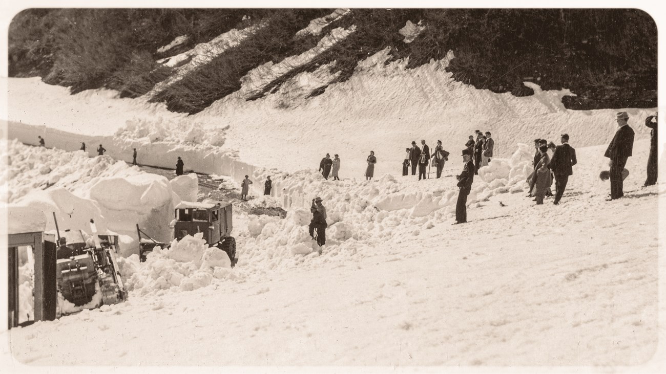 This image was taken by an unknown photographer in 1938, showing that the literal uphill battle of plowing snow off Going-to-the-Sun Road has been a much-watched harbinger of spring here for nearly a century.