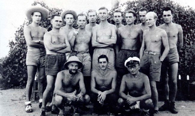 The prisoners liked to build flower gardens in front of the huts. We would take wood from the spars in the hut ceilings to make benches or canopy shades. We also used the wood to make ship models and other beautiful things. . . .In the summer, it was too hot to sleep in the huts so we slept outside.