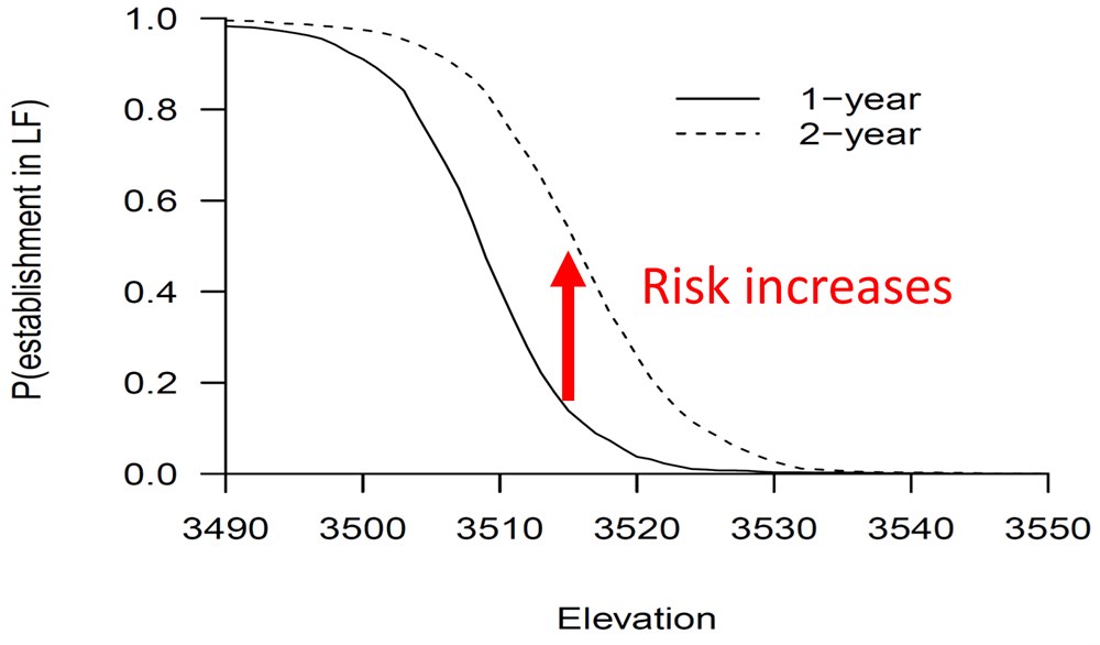 Four scenarios of increasing levels of risk of invasion were described. There is more potential to reverse an invasion at the early stages of establishment, but invasion science strongly suggests that prevention of invasion is preferred to attempts to reverse an invasion, as reversal is seldom successful (Ricciardi et al. 2020). Scenario 1 considered smallmouth bass numbers increasing in Lees Ferry or downriver, but not reproducing. Invasion science suggests that invasions are easier to reverse if new invaders are prevented or removed before reproduction can occur. Scenario 2 advances to an established population of smallmouth bass in Lees Ferry, with reproduction occurring in most years. We considered this situation perhaps reversible over many years if reproduction is successfully disrupted every year. Scenario 3 would occur when there are one or more established populations downriver from Lees Ferry in the mainstem river. This situation is only reversible with extreme changes to dam operations required on a decadal time scale. Scenario 4 is reached when populations become established in tributaries, which cannot be affected by dam operations. This situation is unlikely to be reversible even with extensive removal efforts as well as extreme changes to dam operations. Because all scenarios are difficult or impossible to reverse, prevention of entrainment is seen as the best solution, but that also is difficult, expensive, and requires considerable planning and funding.