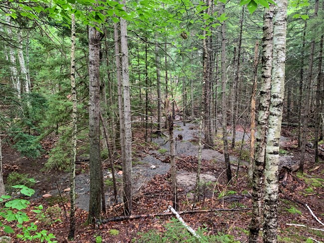 A wash of gravel in the woods