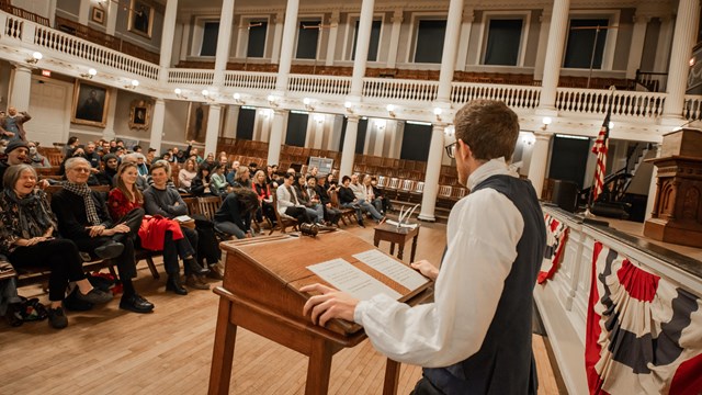 To commemorate the 250th anniversary of the Boston Tea Party, Park Rangers and visitors recreated a historic town meeting about the event. The 250th in Massachusetts and NationwideExplore the other national parks, historic sites, and organizations commemorating this anniversary.