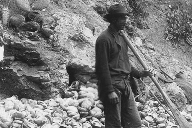 The first Chinese to fish for abalone around the Channel Islands were actually from the San Diego area, which was the center of the California abalone fishery during these early days. Eventually, there were fishing camps on most of the Channel Islands. By modern standards, abalone was incredibly abundant in the Santa Barbara Channel. The fishermen would wade along the shore or float among the shoals in small boats, using poles to pry the shellfish off the rocks and gaffs to recover the creatures.