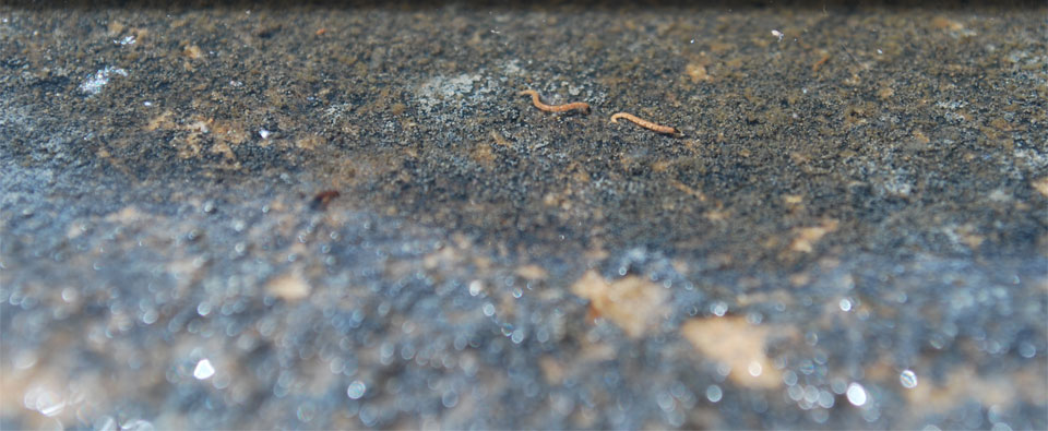 The reddish color is from haemoglobin that is in the midge’s blood. The haemoglobin allows the larvae to breathe under low dissolved oxygen conditions in the pools. You will see them wiggling and writhing, sometimes in masses.