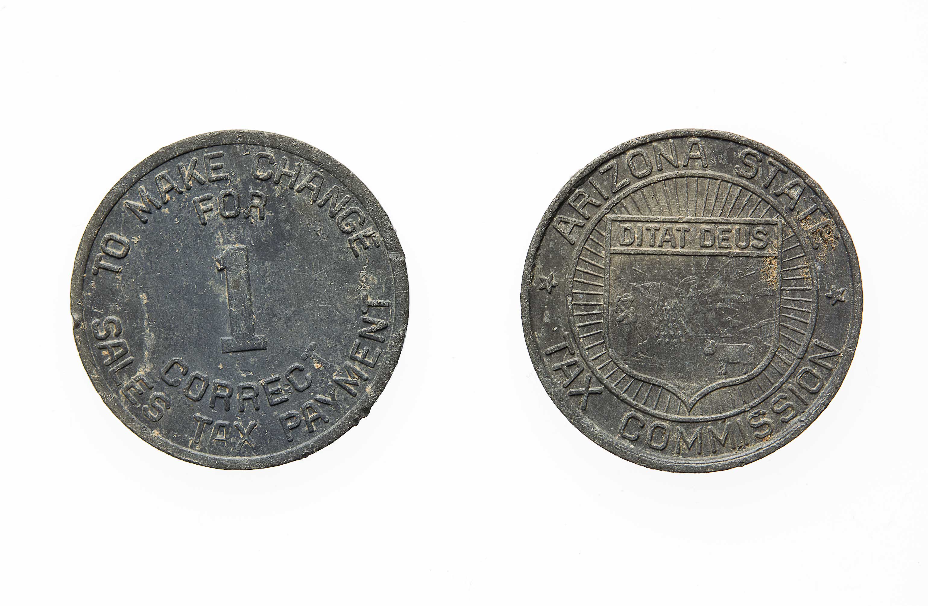 In the 1930s, many states began to charge a sales tax. However, the tax often led to the total cost coming down to fractions of a cent. For example, an item costing $1.50 with a sales tax of 3% would result in a total of $1.545. In order to prevent either the retailer or the customer from profiting by rounding up or down, tax coins were introduced. By using a tax coin, a customer would pay $1.54 plus 5 sales tax coins or pay $1.55 and receive 5 sales tax coins as change. The practice of using sales tax coins died out in the 1950’s.