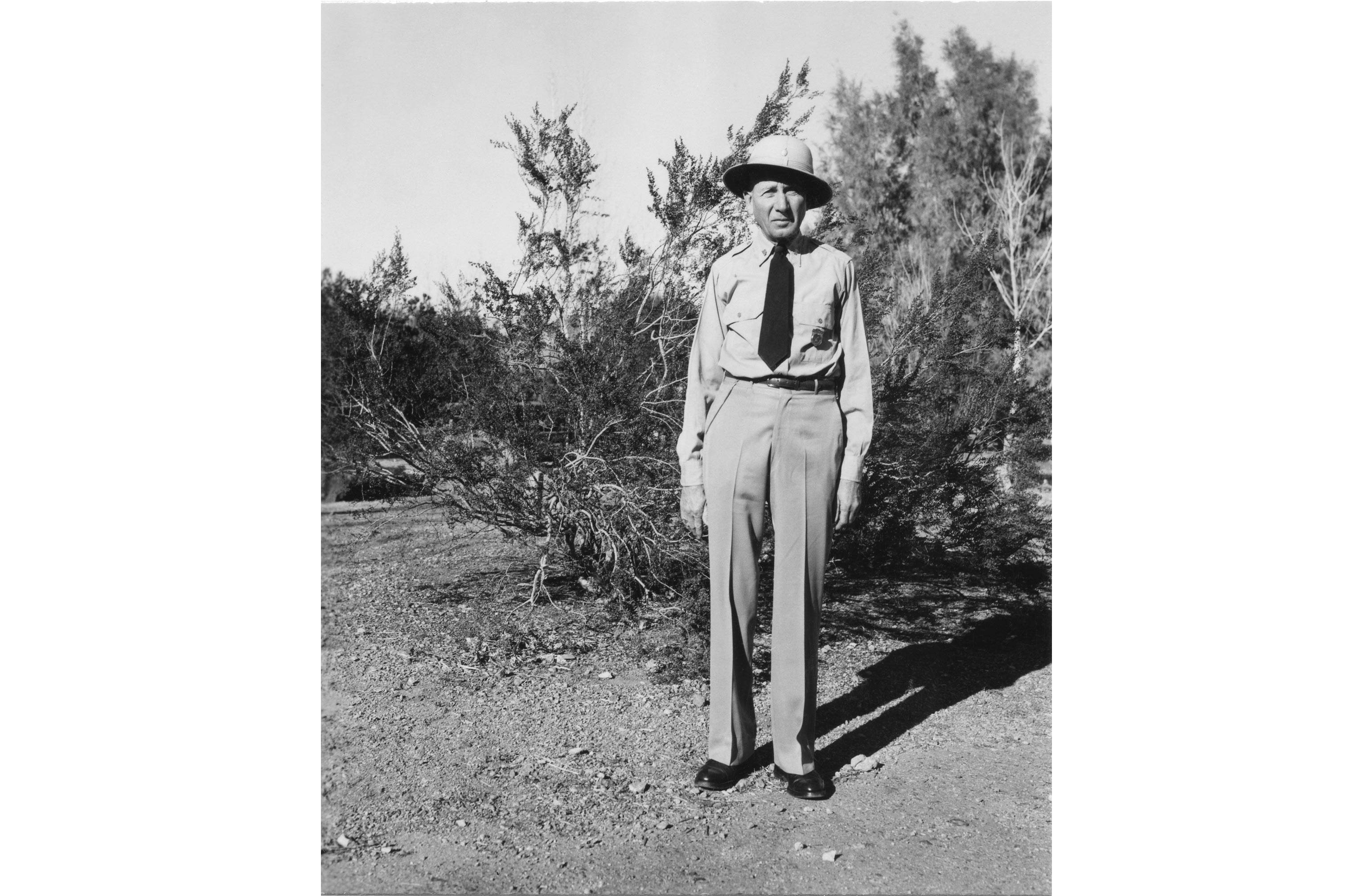Photo of Bill Leicht showing new summer uniform at Boulder Beach Campground, May 10, 1949