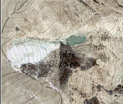 Because of small size of glaciers at RMNP, most satellite imagery does not have a high enough resolution to be of much use. However, aerial photography is very useful, provided it was taken at the end of the summer melt season but before the first fall snows (late August to early October). One problem in determining area change of small glaciers is that errors in the measurement of area may be large relative to the size of the glacier. Despite this, the use of remote imaging has been the most important technique for studying glacier change at RMNP (1).