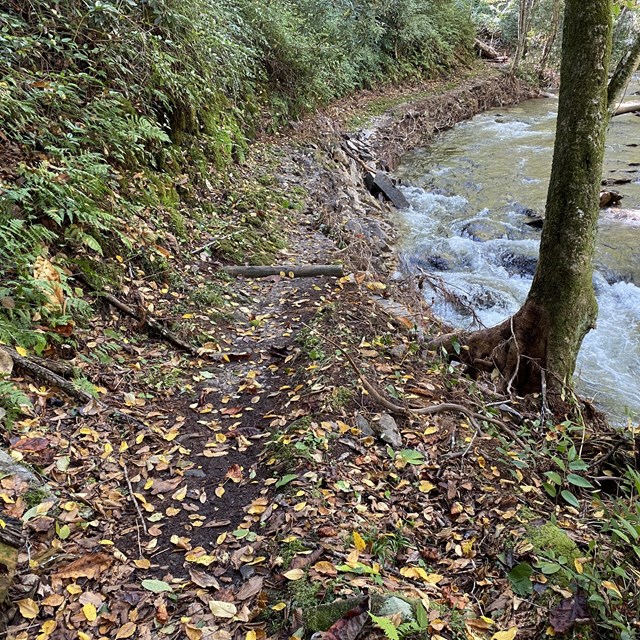 Hikers should use extra caution. From the Cataloochee Valley trailhead to the junction with the Woody house, there is extensive trail erosion and the first and third foot logs are out. No significant damage from Woody house to junction with Caldwell Fork. From Polls Gap to Caldwell junction there are two sections of trail impacted by landslides. Closed to equestrians. Big Creek AreaBig Creek TrailTrail only open for first two miles to hikers and equestrians. Trail is closed beyond the first two miles at Mouse Creek Falls due to significant trail damage. There is no access to campsites #36 and #37 from the Big Creek Trail. Parking only available near ranger station and walk to trailhead is approximately ¾ mile. Due to a bridge being out north of campsite #37, hikers traveling between Swallow Fork Trail and campsite #37 must cross Big Creek. Big Creek may be impassable during high water. Hikers should use extreme caution when fording (crossing) Big Creek and do so at their own risk. Gunter Fork TrailTrail closed to all users due to significant damage. Large sections of trail surface washed away; numerous rockslides and debris are obstructing the path; and multiple water crossings have become unsafe due to the loss of bridges. Swallow Fork TrailThis trail is closed to all users due to significant damage. Multiple foot logs are out including large bridges, fording may be high risk during rain events. Backcountry campsite closures and cautions due to Hurricane Helene damageBackcountry campsites #41 and #42 are closed. Images of Hurricane Helene Damage on Caldwell Fork Trail