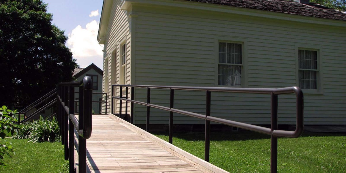 NPS Photo Getting There & AroundAn automobile or bicycle are needed to get to Herbert Hoover National Historic Site from out of town, but the park's most-visited features are all within a half-mile walk from each parking lot. When you arrive, get a free park map and guide from the Visitor Center. ParkingAll parking lots have spaces reserved for vehicles which are properly marked with a disability parking permit, such as a license plate or government-issued hang-tag. WalkwaysThe historic nature of the site may make visiting difficult for people with disabilities. Most of the ground around the historic buildings is level. The wooden boardwalks may be slippery when wet, so please watch your step. If you plan to tour the historic buildings, it is advised to bring someone to assist you. Service AnimalsService animals, such as seeing-eye dogs, are allowed in buildings while performing their work. ServicesAccess PassThe America the Beautiful - The National Parks and Federal Recreational Lands Pass Series includes the Access Pass: a free, lifetime admission and discount pass for U.S. citizens or permanent residents with permanent disabilities. Access Passes are available online and the visitor center. Mobile AppThe Herbert Hoover NHS mobile app has accessible features for visitors. Visitors With Mobility ImpairmentsHard-surfaced walkways and ramps lead to all publicly accessible buildings and picnic shelters. An accessible walkway leads to the graves of President and Mrs. Hoover and to a ground-level observation deck in the tallgrass prairie. The Visitor Center and Presidential Library & Museum each have switch-operated automatic doors and wheelchairs available for loan. The Herbert Hoover NHS mobile app provides maps, photographs, text, and audio of all sites in the park. Visitors With Hearing ImpairmentsAdventure and Great Undertakings, the 12-minute film shown at the Visitor Center is captioned. Assistive listening devices are available from the front desk. The Herbert Hoover NHS mobile app has text descriptions of all audio features. Visitors may borrow hearing aid adapters for accessibility devices, also from the Visitor Center. Requests for information may also be e-mailed or faxed to (319) 643-7864. Visitors With Sight ImpairmentsThe park map and guide is audio described by UniDescription. Visitors may get a Braille transcript of the park map and guide from the Visitor Center. The Herbert Hoover NHS mobile app provides audio descriptions of all sites, including the Visitor Center exhibits, along with self-guided audio tours of the park. Assistive listening devices with audio description are available from the front desk for the 12-minute film Adventure and Great Undertakings. FacilitiesVisitor CenterThe Visitor Center and its restrooms are wheelchair accessible. Visitors may borrow a wheelchair and a photo album of the Birthplace Cottage, and accessibility-enabled mobile devices for the Herbert Hoover NHS mobile app. The 12-minute film Adventure and Great Undertakings is captioned. Assistive listening devices provide audio description and hearing assist for the film. Birthplace CottageThree steps lead up the stoop to the front door of the Birthplace Cottage. The back porch is accessible by a wheelchair ramp. Park staff can set up an additional ramp to provide access through the back door from the porch. Blacksmith ShopA wooden boardwalk and a ramp lead into the Blacksmith Shop. SchoolhouseA ramp leads to the entrance of the Schoolhouse, which has a low threshold to pass over. Friends MeetinghouseThe front entrance to the Friends Meetinghouse is wheelchair accessible, though the doorways have low thresholds and may be too narrow for some wheelchairs. The back porch and inside walking surfaces may be slippery when wet. Statue of IsisThe Statue of Isis is along a paved walkway between the historic core area and the Herbert Hoover Presidential Library and Museum. House of the MaplesThe site of the House of the Maples is not wheelchair accessible, but may be approached on the gravel trace of Downey Street. The interpretive marker is on the gravel's edge. Presidential Library & MuseumThe Presidential Library & Museum has no steps. The museum galleries, gift shop, water fountain, and restrooms are all wheelchair accessible. The movie is captioned and wheelchair seating is available in the back row. Portions of the permanent exhibits are available on captioned video. Tallgrass PrairieThe tallgrass prairie trails are mowed grass over rolling hills. Paved walkways from the Presidential Library and Museum and Gravesite parking lots lead to the prairie trailheads. Some prairie plants grow along the sidewalk approaching the Gravesite. The prairie may be viewed from a ground-level observation deck along the wheelchair-accessible trail to the Gravesite, which passes through part of the prairie. A prairie garden in front of the Visitor Center displays some common grasses and wildflowers found in tallgrass prairies. Isaac Miles FarmsteadAccess to the Isaac Miles Farmstead is by the tallgrass prairie trails, which are mowed grass. The buildings of the farmstead are not open to the public. GravesiteA wheelchair accessible paved walkway leads to the Gravesite of President and Mrs. Hoover from the Gravesite parking lot. Picnic SheltersTwo picnic shelters are on the north side of Hoover Creek. Parking for persons with disabilities is on the south side of the creek. Visitors can get to the shelters from the parking area by crossing the foot bridge over the creek. Both picnic shelters are accessible by paved trails. A comfort station by the West Picnic Shelter has one wheelchair accessible restroom stall. A one-inch threshold must be crossed to enter. Hoover CreekHoover Creek may be viewed from the foot bridges near the Birthplace Cottage and the picnic shelters, both of which are wheelchair accessible. The creek bank areas below ground level, including the areas beneath all bridges are closed to public use. Exc