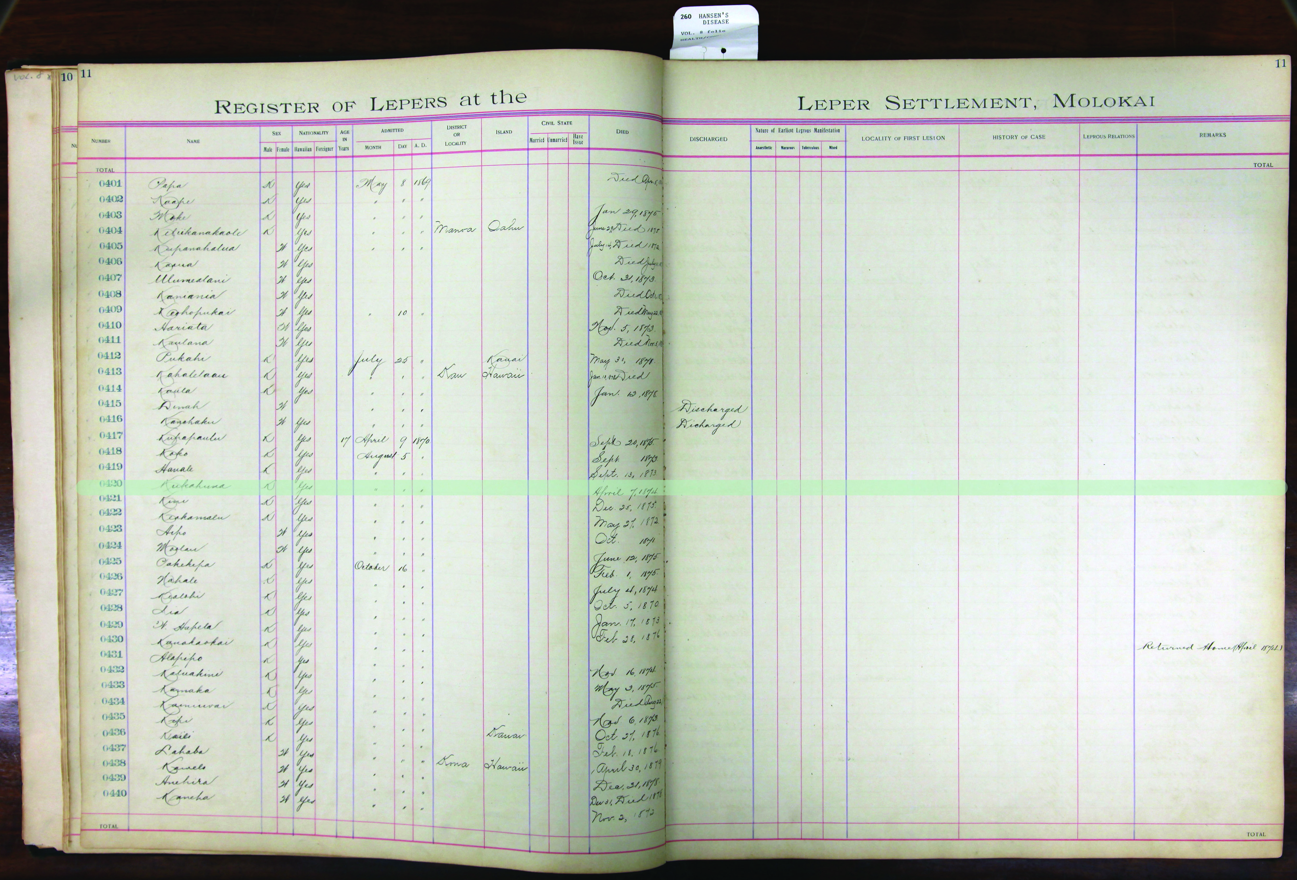 To request patient information, contact the Department of Health by email at hansensdisease.doh@doh.hawaii.gov or by post at: Hansen’s Disease Branch, 3267 Kilauea Ave., Room 102, Honolulu, HI 96816.