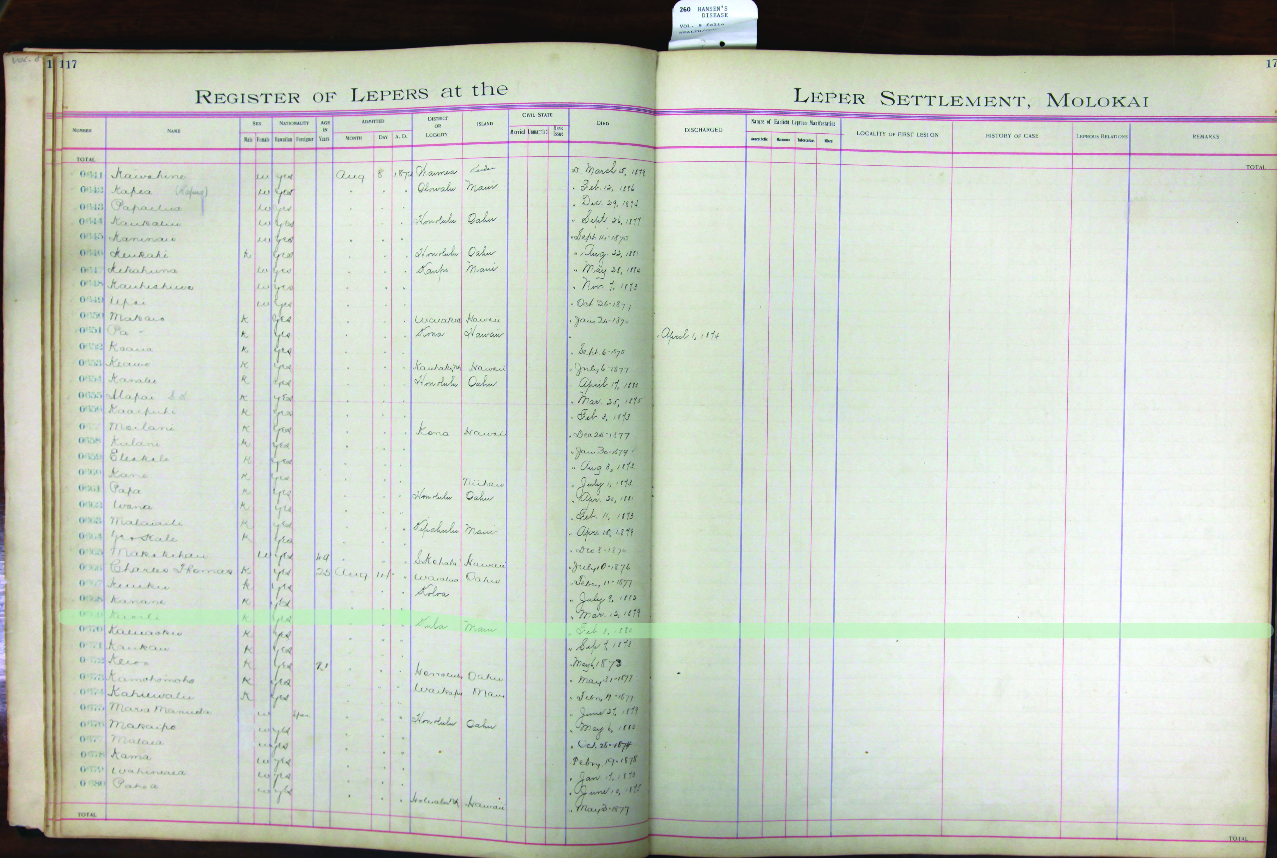 To request patient information, contact the Department of Health by email at hansensdisease.doh@doh.hawaii.gov or by post at: Hansen’s Disease Branch, 3267 Kilauea Ave., Room 102, Honolulu, HI 96816.