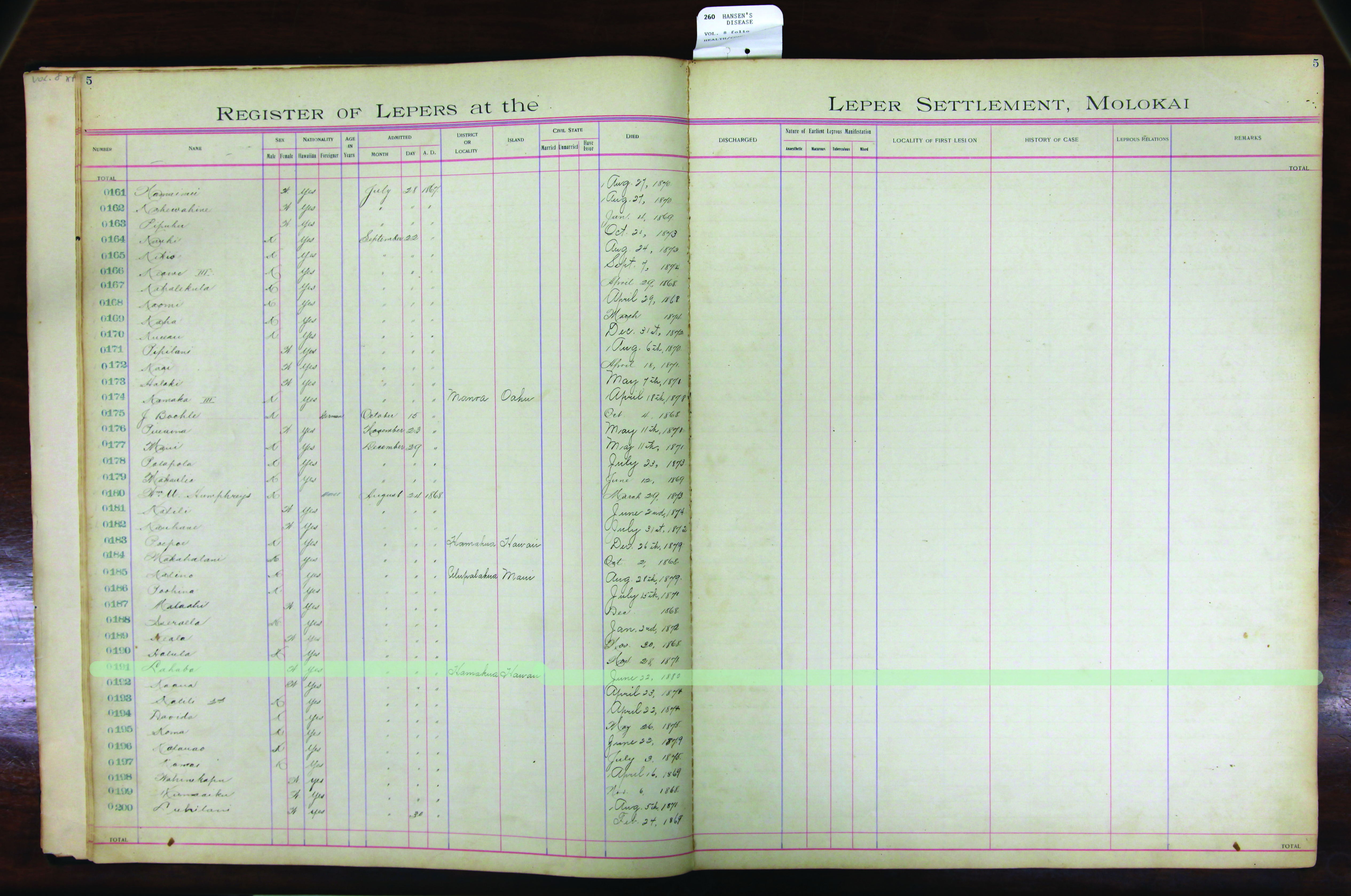 To request patient information, contact the Department of Health by email at hansensdisease.doh@doh.hawaii.gov or by post at: Hansen’s Disease Branch, 3267 Kilauea Ave., Room 102, Honolulu, HI 96816.