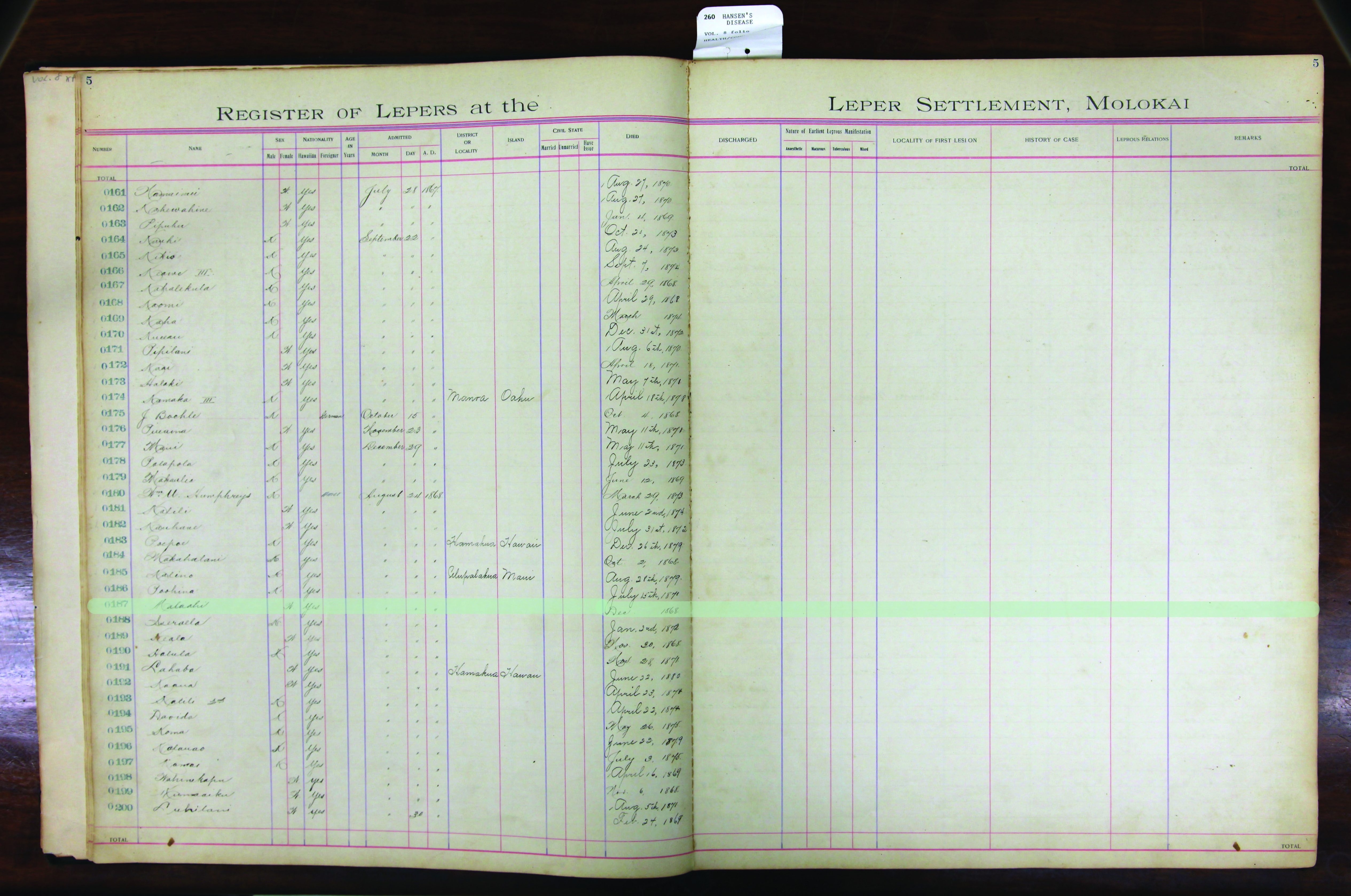 To request patient information, contact the Department of Health by email at hansensdisease.doh@doh.hawaii.gov or by post at: Hansen’s Disease Branch, 3267 Kilauea Ave., Room 102, Honolulu, HI 96816.