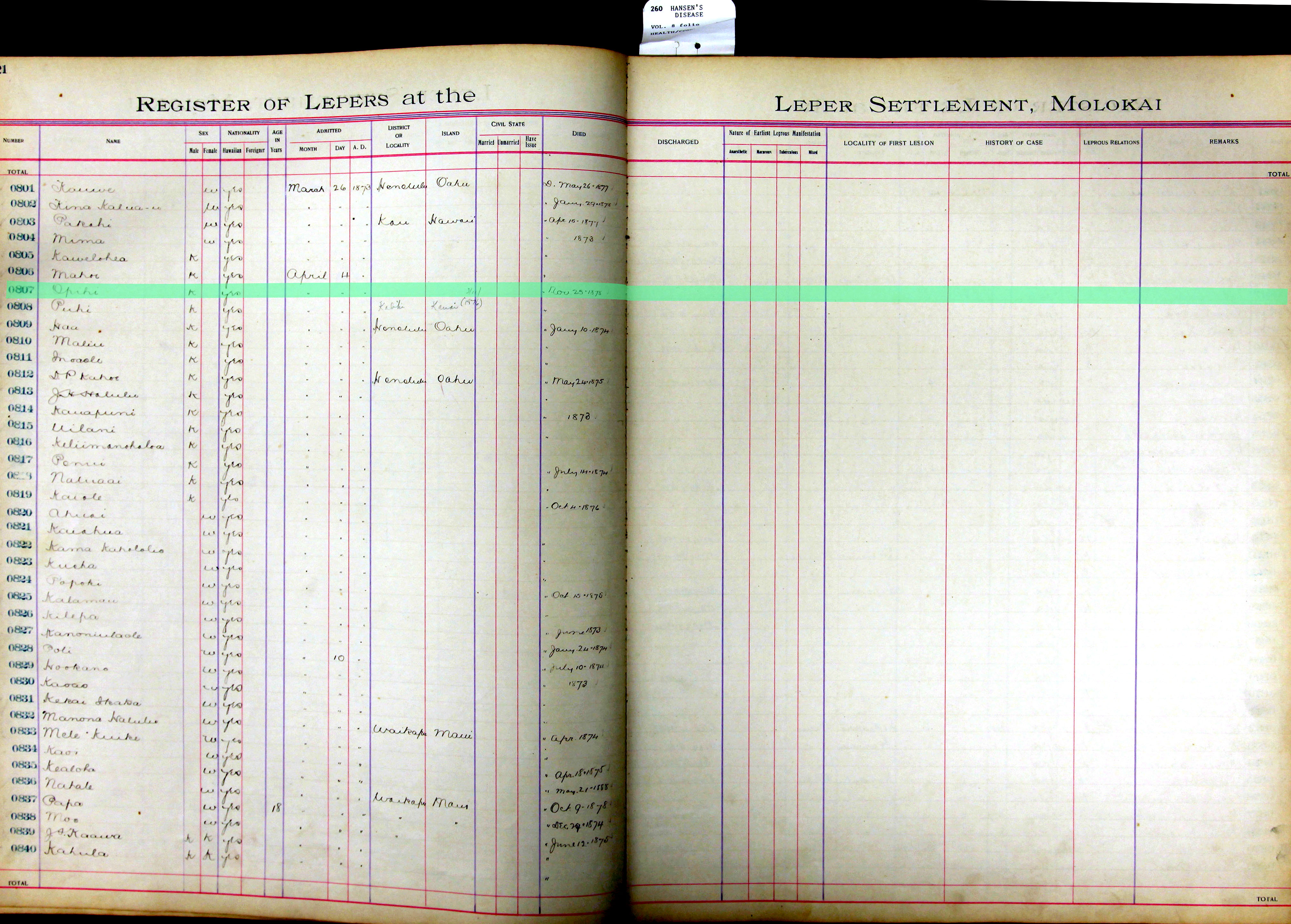 To request patient information, contact the Department of Health by email at hansensdisease.doh@doh.hawaii.gov or by post at: Hansen’s Disease Branch, 3267 Kilauea Ave., Room 102, Honolulu, HI 96816.