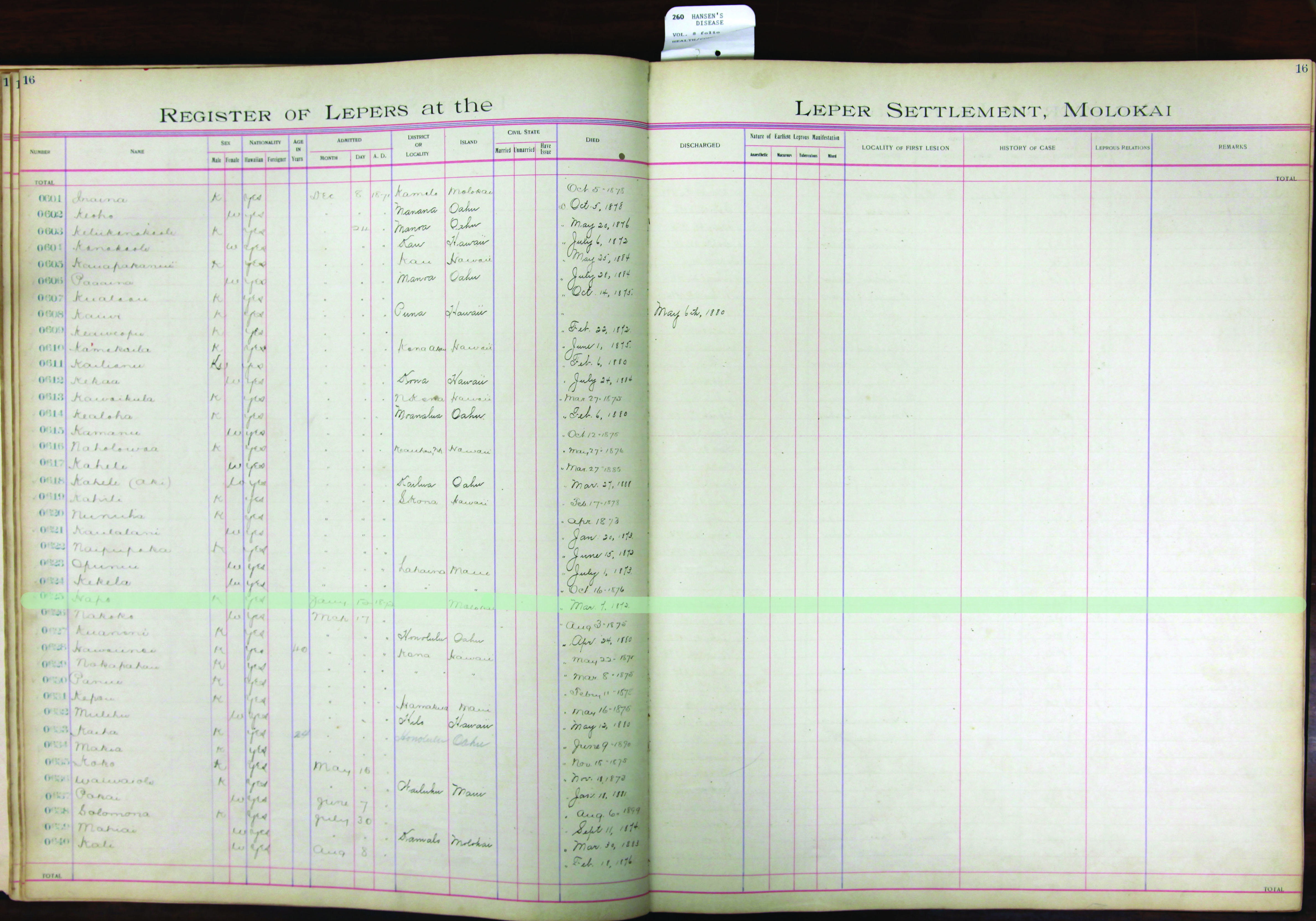 To request patient information, contact the Department of Health by email at hansensdisease.doh@doh.hawaii.gov or by post at: Hansen’s Disease Branch, 3267 Kilauea Ave., Room 102, Honolulu, HI 96816.