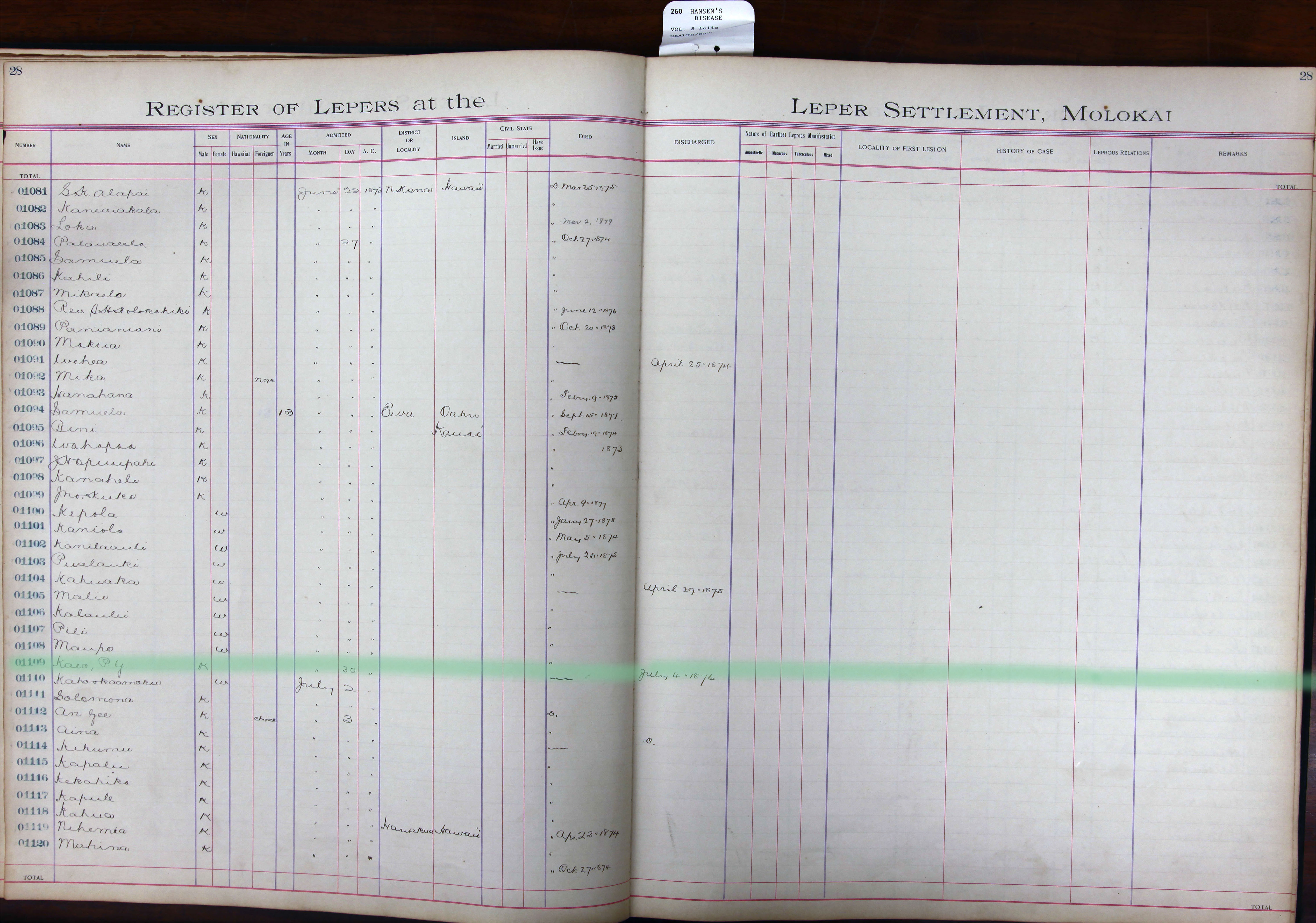 To request patient information, contact the Department of Health by email at hansensdisease.doh@doh.hawaii.gov or by post at: Hansen’s Disease Branch, 3267 Kilauea Ave., Room 102, Honolulu, HI 96816.