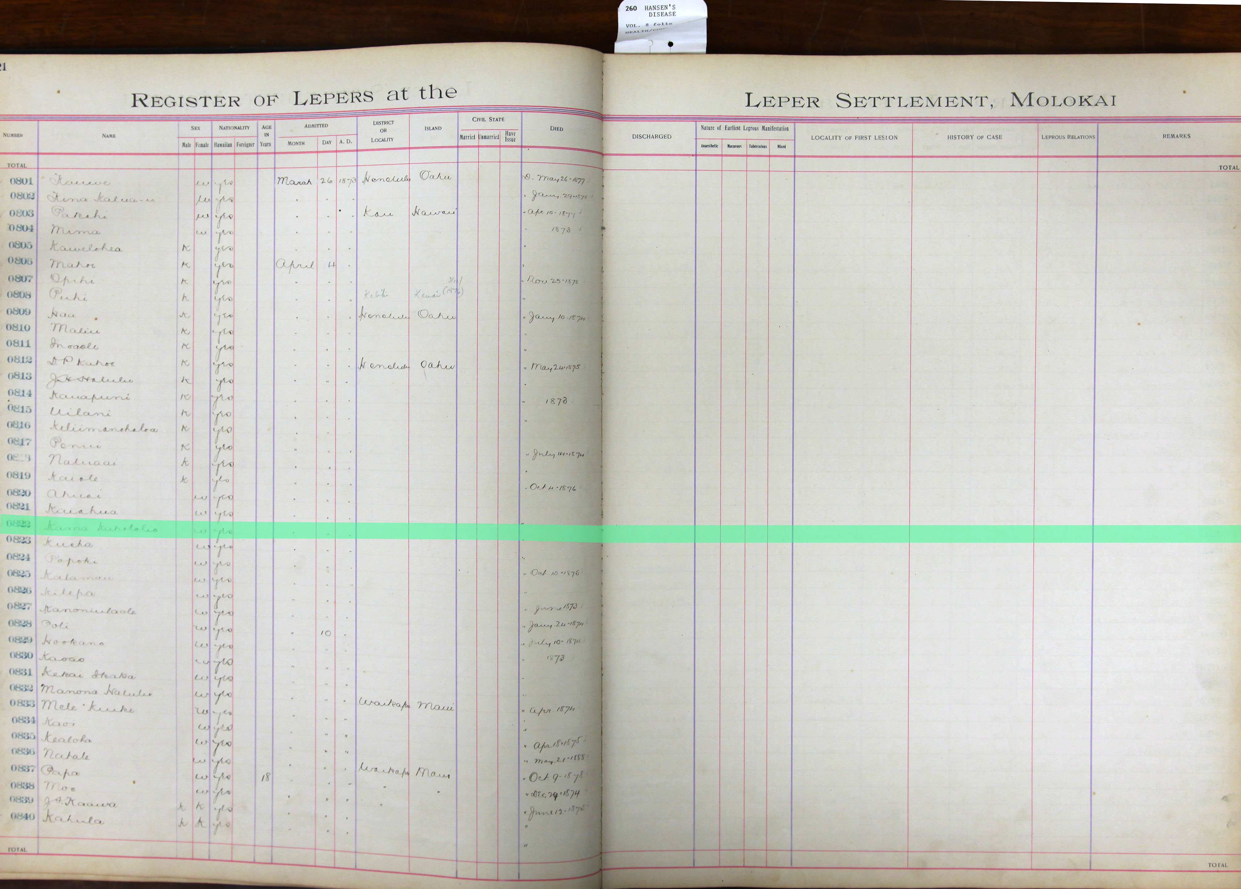 To request patient information, contact the Department of Health by email at hansensdisease.doh@doh.hawaii.gov or by post at: Hansen’s Disease Branch, 3267 Kilauea Ave., Room 102, Honolulu, HI 96816.