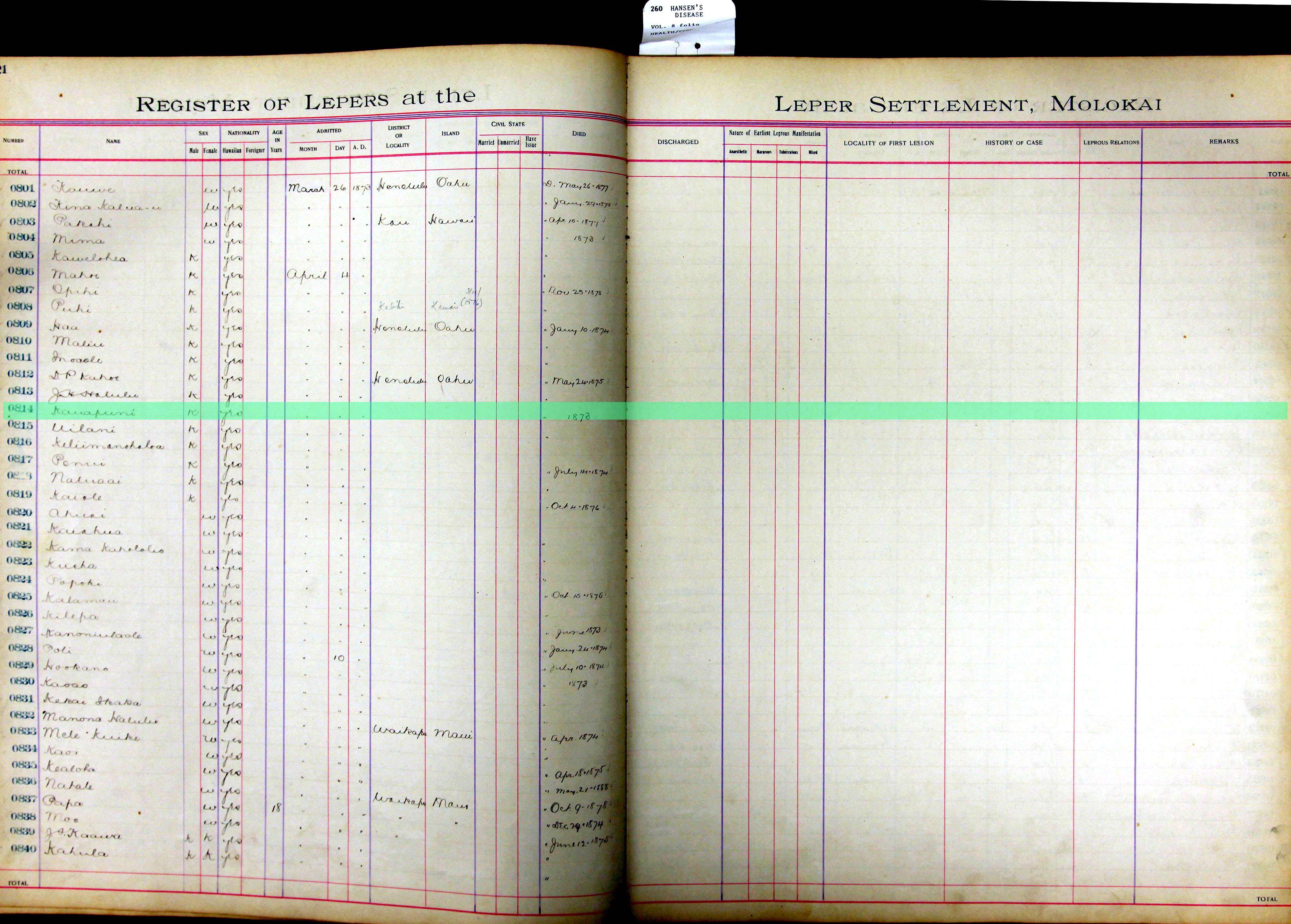 To request patient information, contact the Department of Health by email at hansensdisease.doh@doh.hawaii.gov or by post at: Hansen’s Disease Branch, 3267 Kilauea Ave., Room 102, Honolulu, HI 96816.