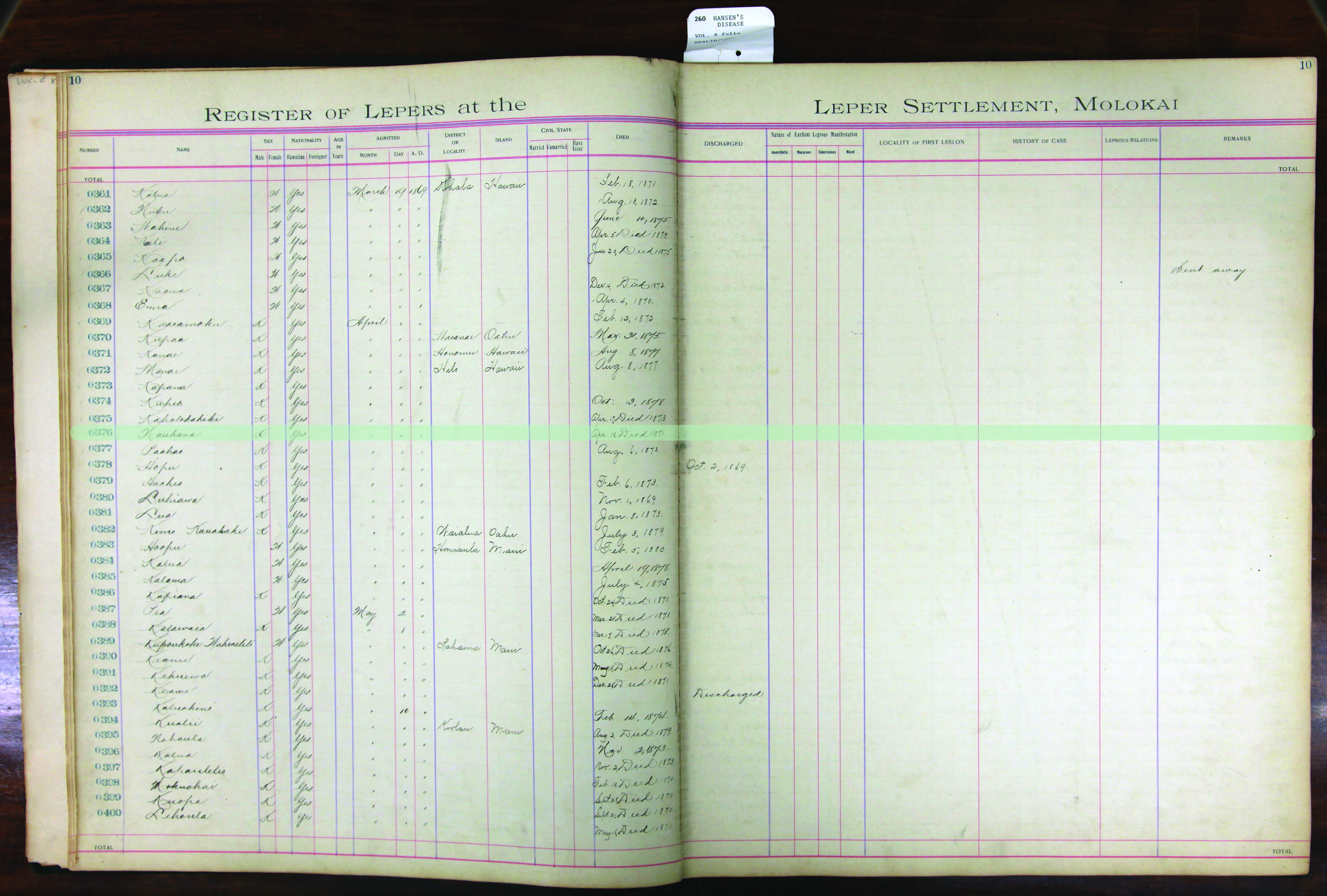 To request patient information, contact the Department of Health by email at hansensdisease.doh@doh.hawaii.gov or by post at: Hansen’s Disease Branch, 3267 Kilauea Ave., Room 102, Honolulu, HI 96816.