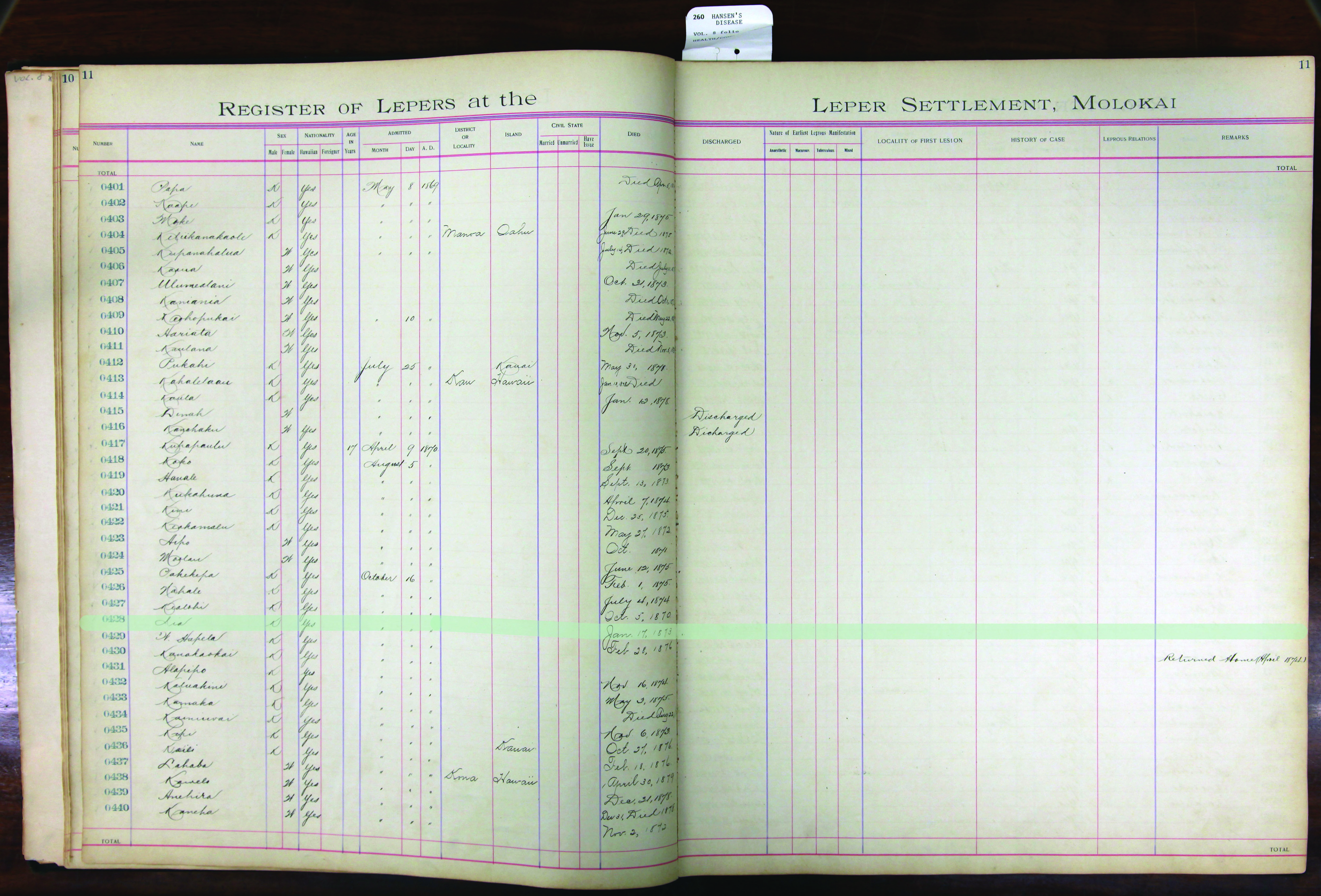 To request patient information, contact the Department of Health by email at hansensdisease.doh@doh.hawaii.gov or by post at: Hansen’s Disease Branch, 3267 Kilauea Ave., Room 102, Honolulu, HI 96816.
