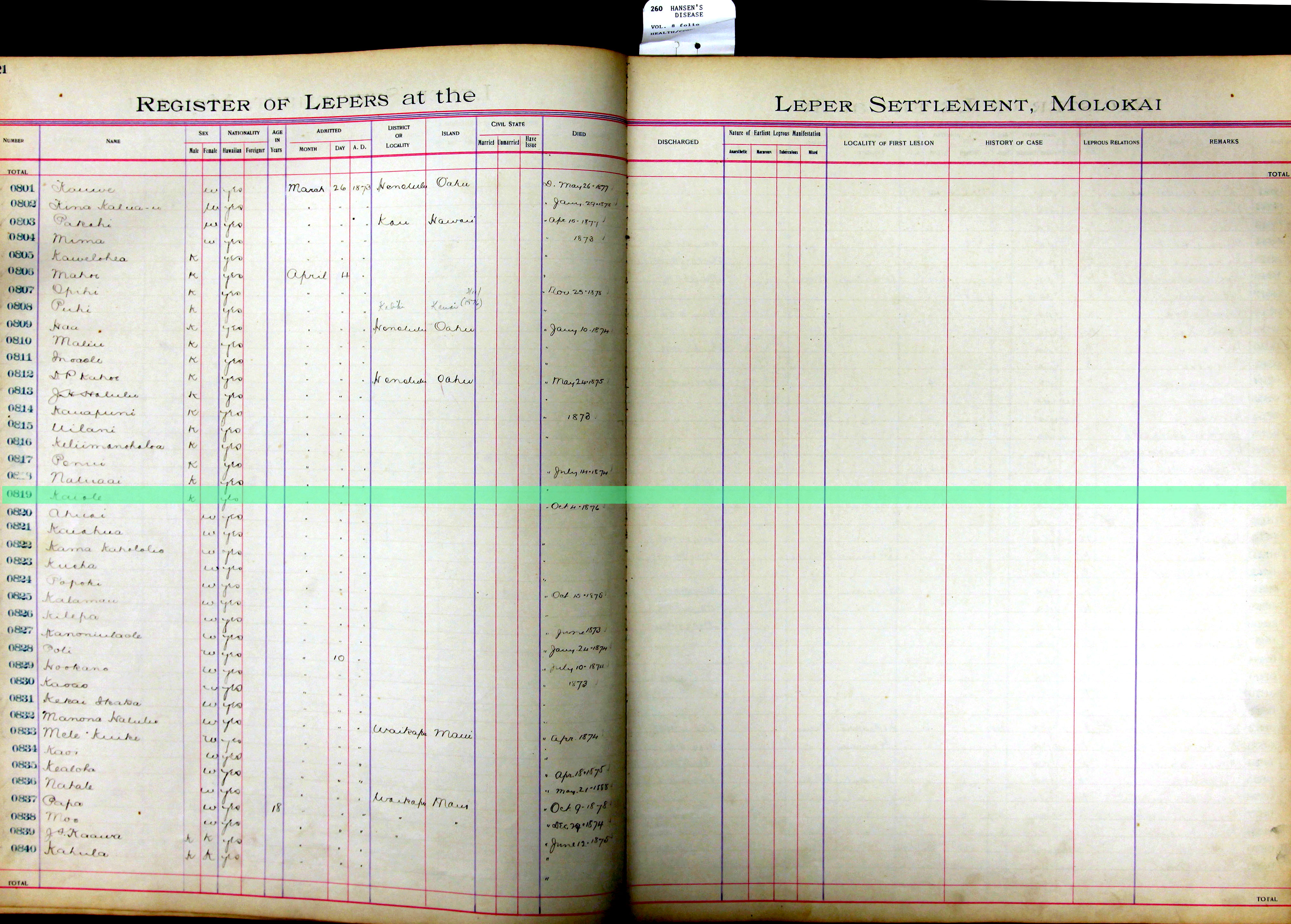 To request patient information, contact the Department of Health by email at hansensdisease.doh@doh.hawaii.gov or by post at: Hansen’s Disease Branch, 3267 Kilauea Ave., Room 102, Honolulu, HI 96816.