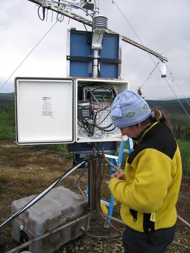 Webcam courtesy of the National Weather Service office in Bellemont, Arizona. In the distance, the San Francisco Peaks with Mount Humphreys at 12,633 feet (3,850 m) above sea level, the highest point in the state of Arizona. Bellemont is located along Interstate 40, 13.6 miles (22 Km) west of Flagstaff, Arizona.