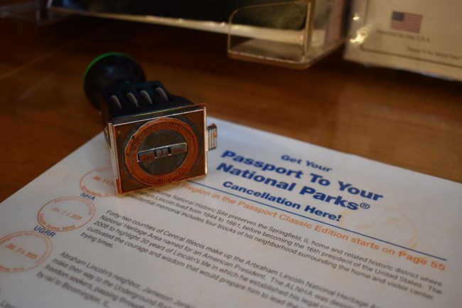 NPS photo. What are Passport Stamps?Passport stamps are a fun way to remember your visit to New Philadelphia National Historic Site! Or any National Park site!America’s National Parks started the program in 1986. It allows visitors to "put a stamp on every national park experience." In addition, it helps visitors "Take only pictures, leave only footprints" by providing a souvenir to take home. Each national park site has at least one cancellation stamp. These stamps are circular with the name of the park and the date of your visit. The country is divided into nine regions, and each region is assigned a specific color. New Philadelphia NHS is in the Midwest Region (orange). You can collect stamps in your official Passport book. You can also create your own way to collect stamps! People like to stamp brochures, postcards, scrapbooks, journals, and more. Where are stamps available?Passport stamps are not available onsite at New Philadelphia National Historic Site. You can find them at the following locations.Barry City Hall (4 miles west)Barry City Hall is 4 miles west of New Philadelphia. Paved parking is available, but RV and trailer parking is not available.Barry City Hall has the following stamps: