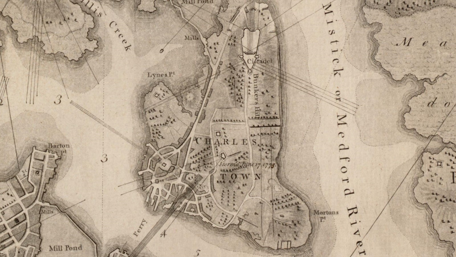 In the early hours of June 17, 1775, the British Navy tried to dislodge the Provincials from their redoubt on Breed's Hill with a two-hour barrage of cannon fire from ships in Boston Harbor. This failed and over 2,000 British Regulars tried to remove the Provincials from both hills. The Regulars ferried across the harbor from Boston to Charlestown.