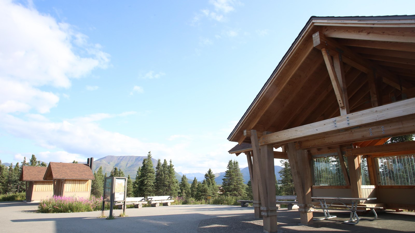 Sitting amid spruce trees, 13 miles inside Denali National Park, is Mountain Vista. It is accessible from late winter through fall for private vehicles, and by a free bus from the visitor center in summer.