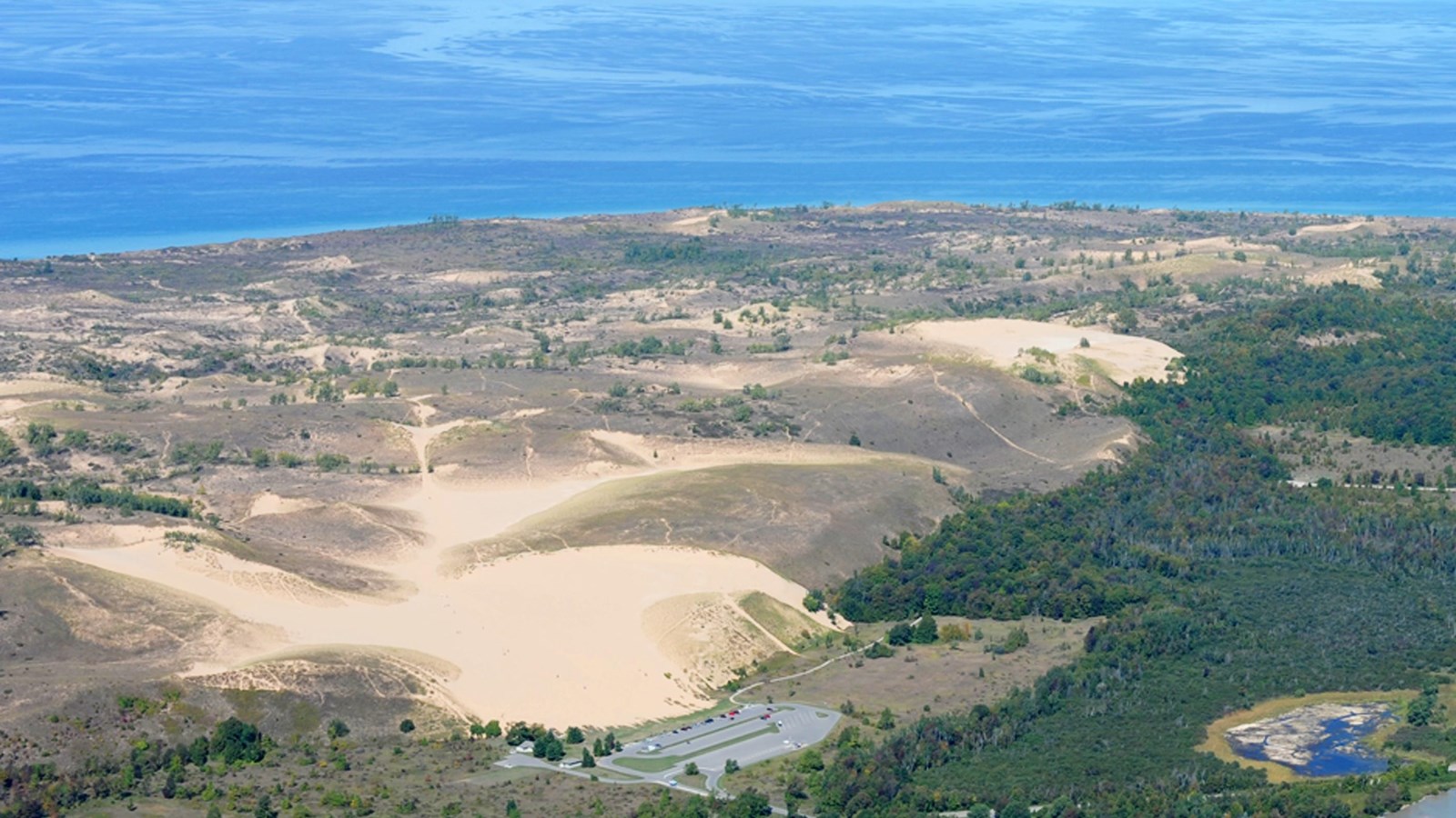 Looking for a steep drop into Lake Michigan? This is not the right location. Visit the Lake Michigan Overlook on the Pierce Stocking Scenic Drive instead.