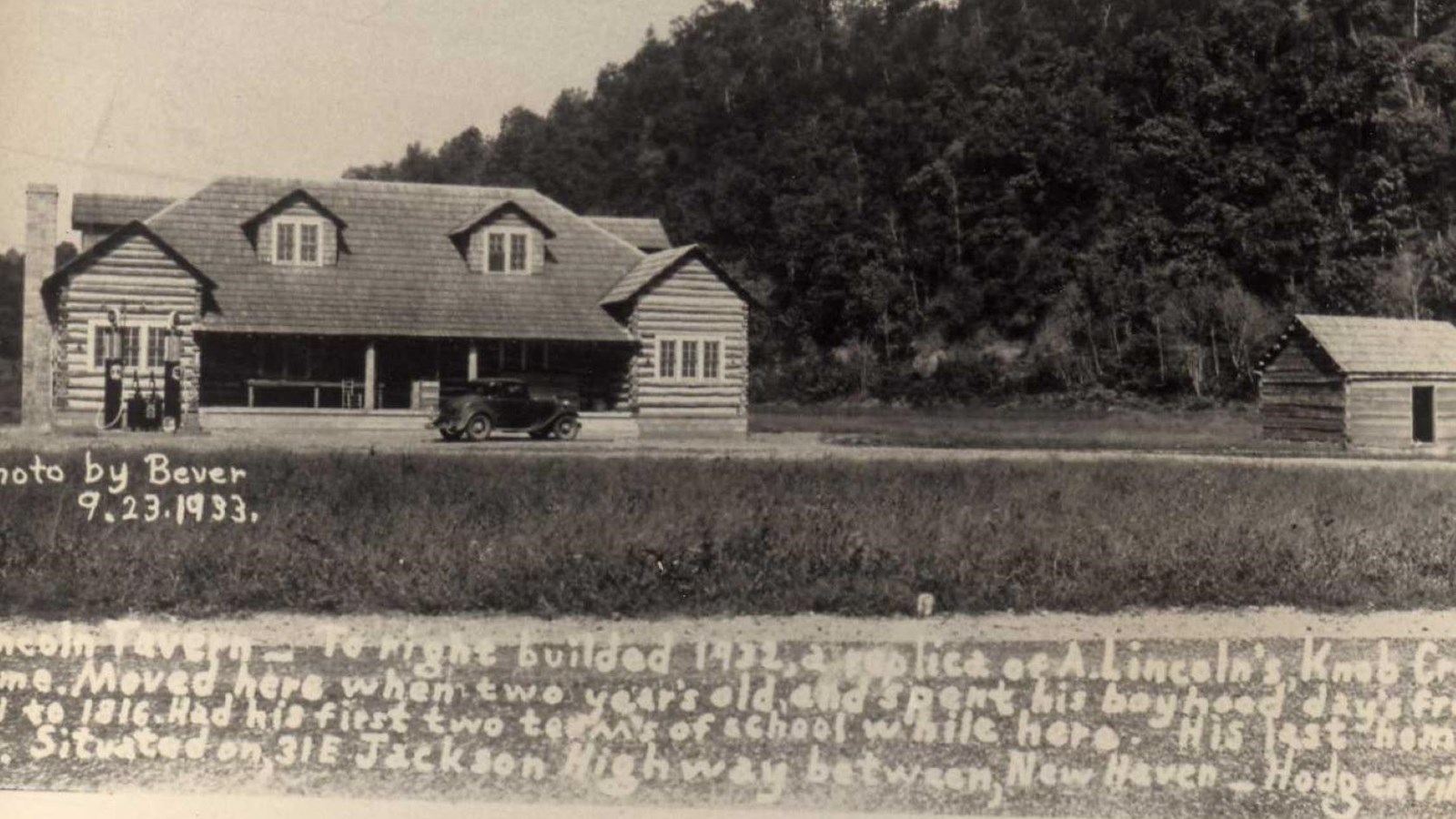 The Lincoln Tavern at Knob Creek was part of the private memorial to Abraham Lincoln that was begun by Hattie and Chester Howard in 1931. The log building was constructed as a roadside tavern to serve the new and growing automobile tourist trade of the era.
