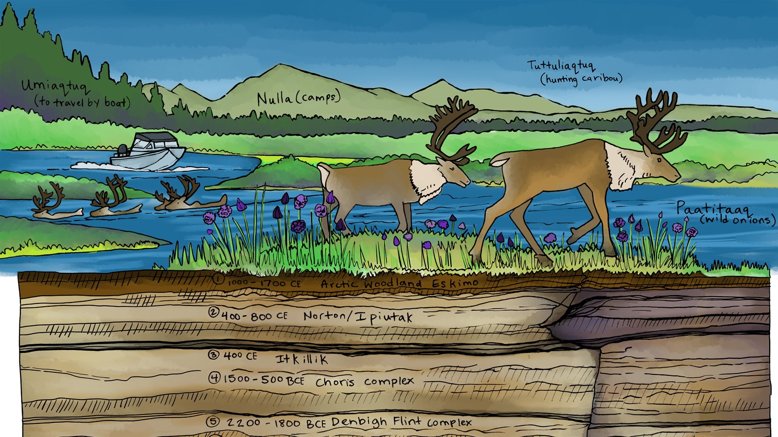 Onion Portage, known as Paatitaaq in Iñupiaq for the wild onions that grow there, is an area along the Kobuk River. For 8,000 years, people camped, made tools, prepared game, and eventually settled at Onion Portage.