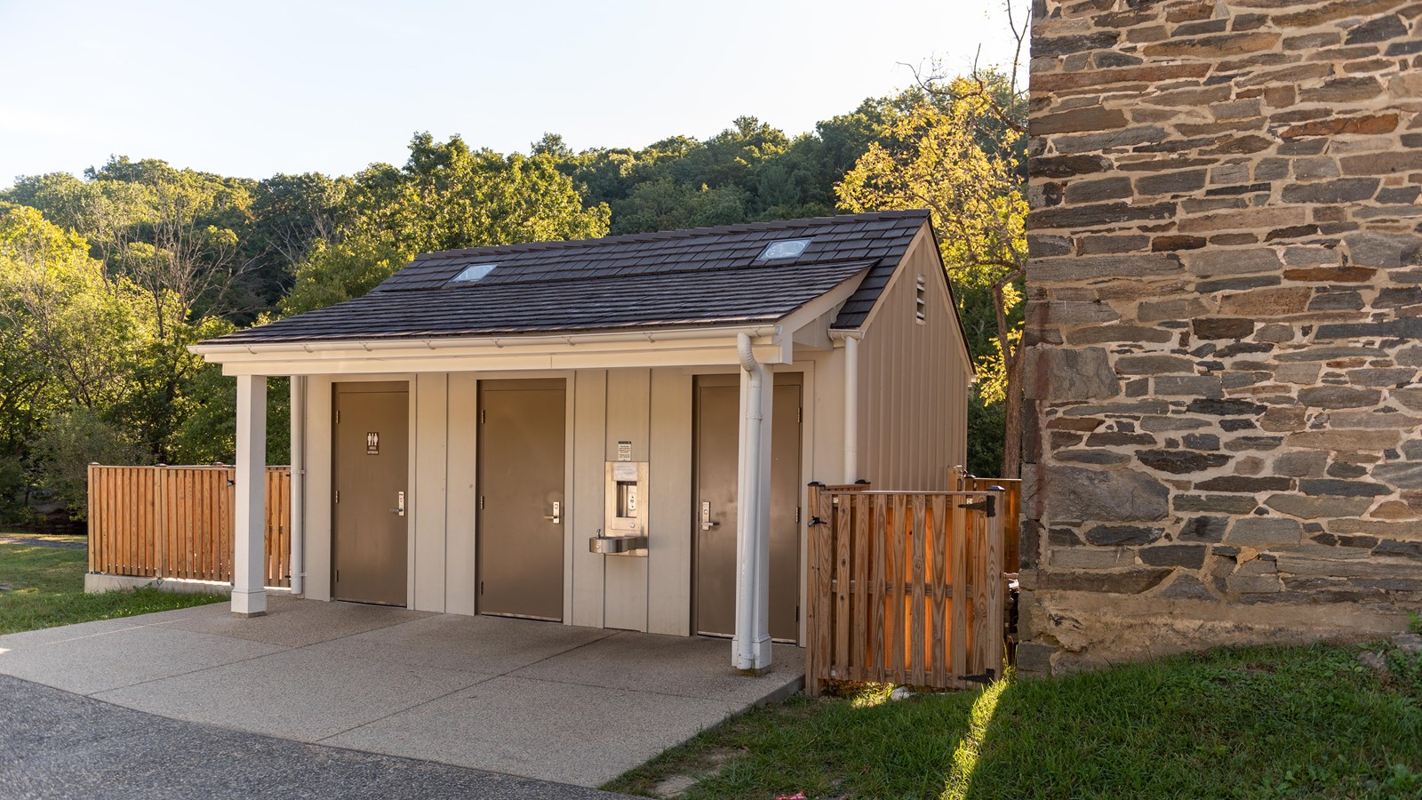 The restroom facilities are located behind Peirce Barn and consist of two unisex facilities.