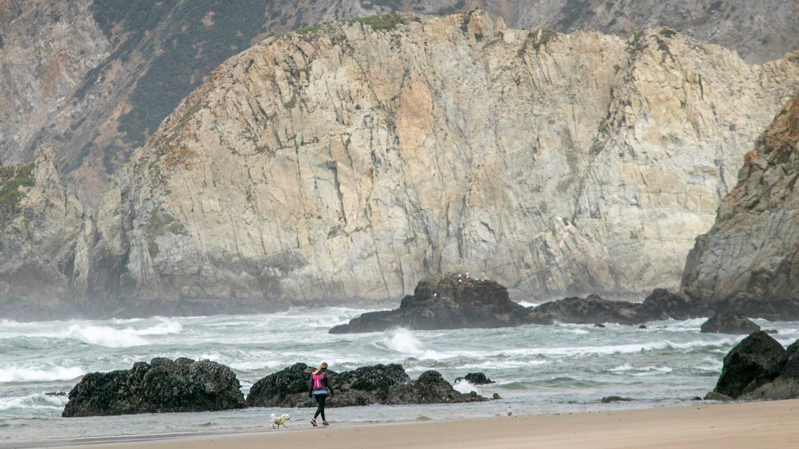 Never turn your back to the ocean. Due to the frequently large surf, this is not a beach at which it is safe to play close to the water's edge, much less to go for a swim. The ocean water may be as low as 50°F (10°C). Hypothermia, sneaker waves, and rip currents are just a few beach hazards of which visitors should be aware while visiting Point Reyes Beaches. Please visit our Safety Issues Associated with Beaches page for more information.