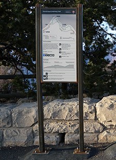 VIS signs provide information to visitors who are on foot, riding bicycles, or traveling by motor vehicle at very low speed. These signs can include trailheads, trail directionals, orientation, resource protection, and safety.