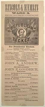 In 1860, the polling place operated differently than it does today. Voting men would receive a paper ticket for the party of their choice. On Election Day the official would announce each vote out loud before placing it in the ballot box. Rather than voting for individuals a man would be voting for the entire list of candidates from that party, from the local to national level. Obviously the public nature of the voting process left room for corruption imagine your boss standing at the polling place to hear if you voted for his candidate!