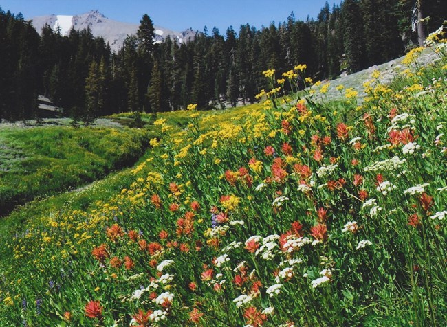 The foothills, meadows, forests, and tundra of mountain parks offer a variety of habitats where wildflowers can be found. The timing of blooming and the abundance of flowers vary with weather, disturbance (like fire or grazing), and other local conditions. Some parks provide specific wildflower information on their web pages and through guidebooks. If you are seeking wildflower viewing, look for local information ahead of time, as the abundance and variety of wildflower blooms can vary a lot from year to year and seasonally.