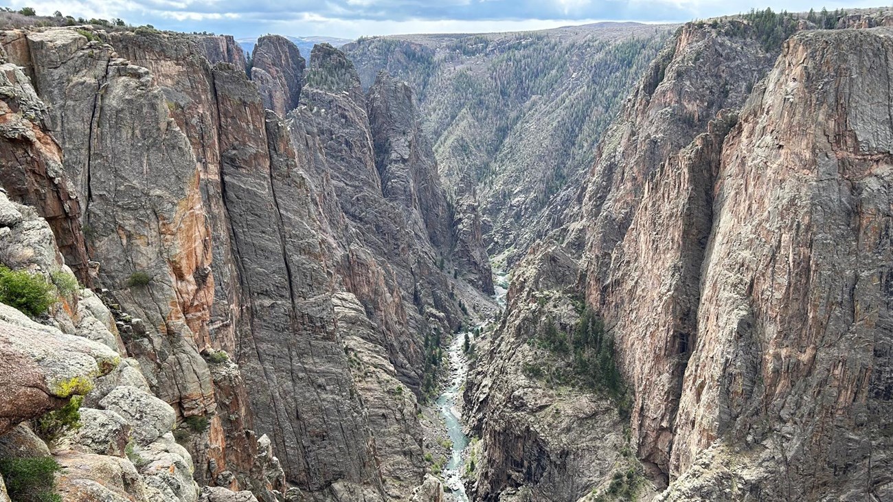 The North Rim is reached by taking a gravel road from the east end of Crawford State Park. The North Rim Road is unpaved and provides access to 6 overlooks. The canyon walls on the North Rim are almost vertical, offering some of the most impressive views found in the national park. Allow 2-3 hours for a leisurely tour.