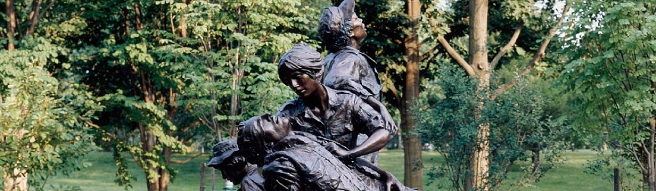 A popular tourist destination, the National Mall is home to several notable monuments and memorials, including the Lincoln Memorial, Washington Monument, World War II Memorial, and Vietnam Veterans Memorial. Equally important on this symbolic landscape is the Vietnam Women’s Memorial located just north of the Reflecting Pool. The memorial was dedicated in 1993 and portrays three women caring for a fallen soldier.